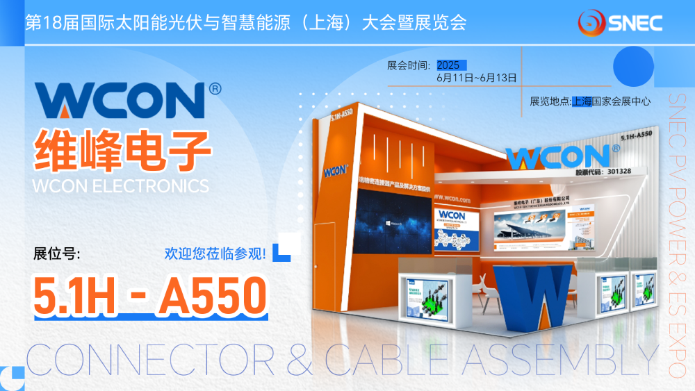 SNEC第十八屆(2025)國(guó)際太陽(yáng)能光伏與智能能源(上海)大會(huì)暨展覽會(huì)將于2025年6月11-13日在國(guó)家會(huì)展中心(上海)舉行。這是全球光伏行業(yè)規(guī)模最大、最具影響力的光伏盛會(huì)。WCON  作為重要參展商受邀參展。