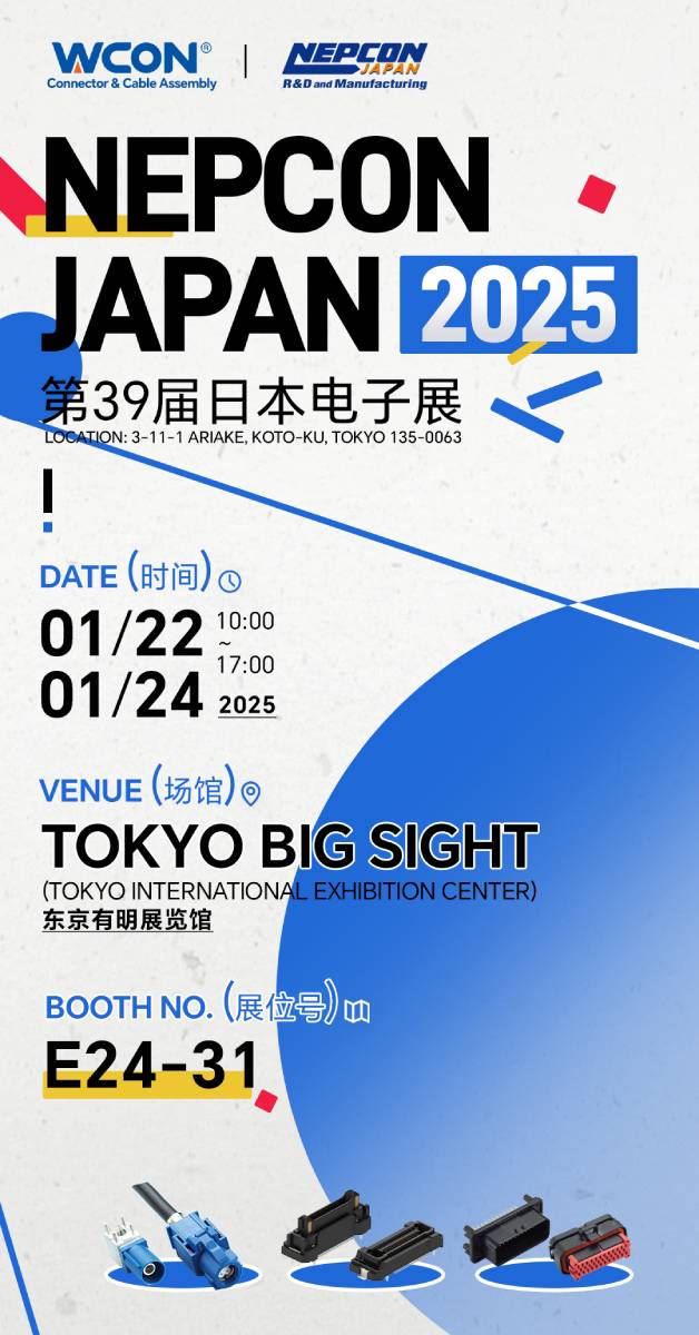 Nepcon Japan 2025(第39屆日本電子技術展)將于1月22日至24日在日本東京有明展覽中心舉行。 WCON在E館E24-31展位!